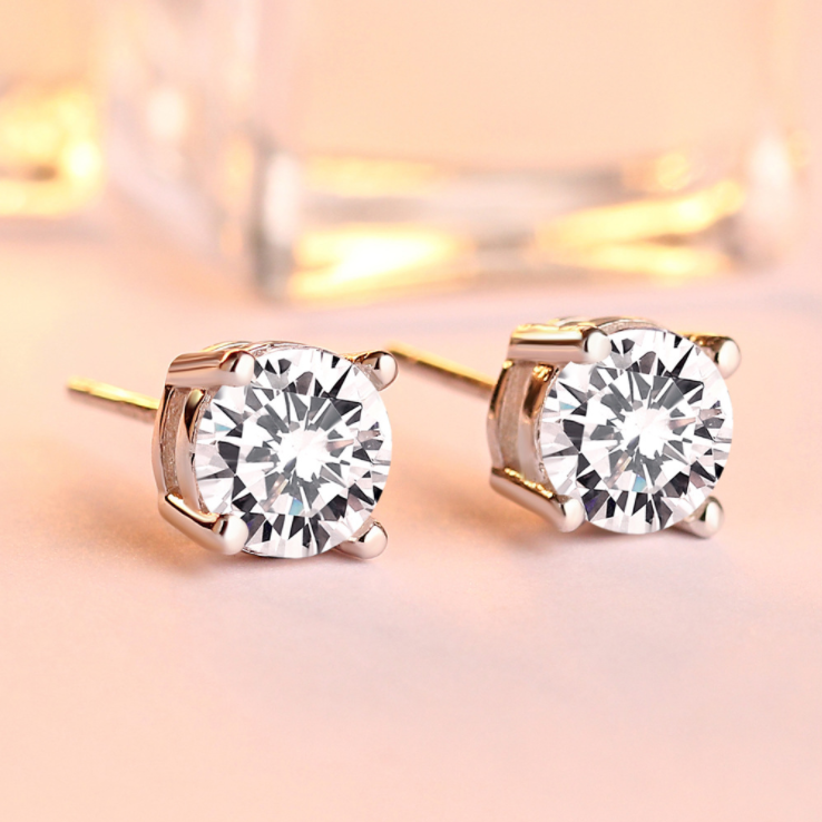 Jzora Classic Four Paw Sterling Silver Diamond Stud Earrings
