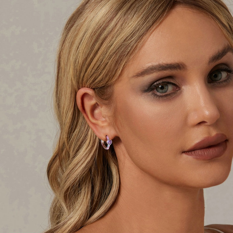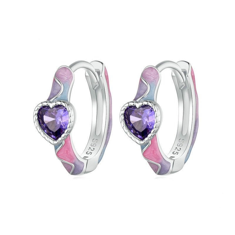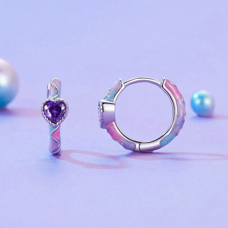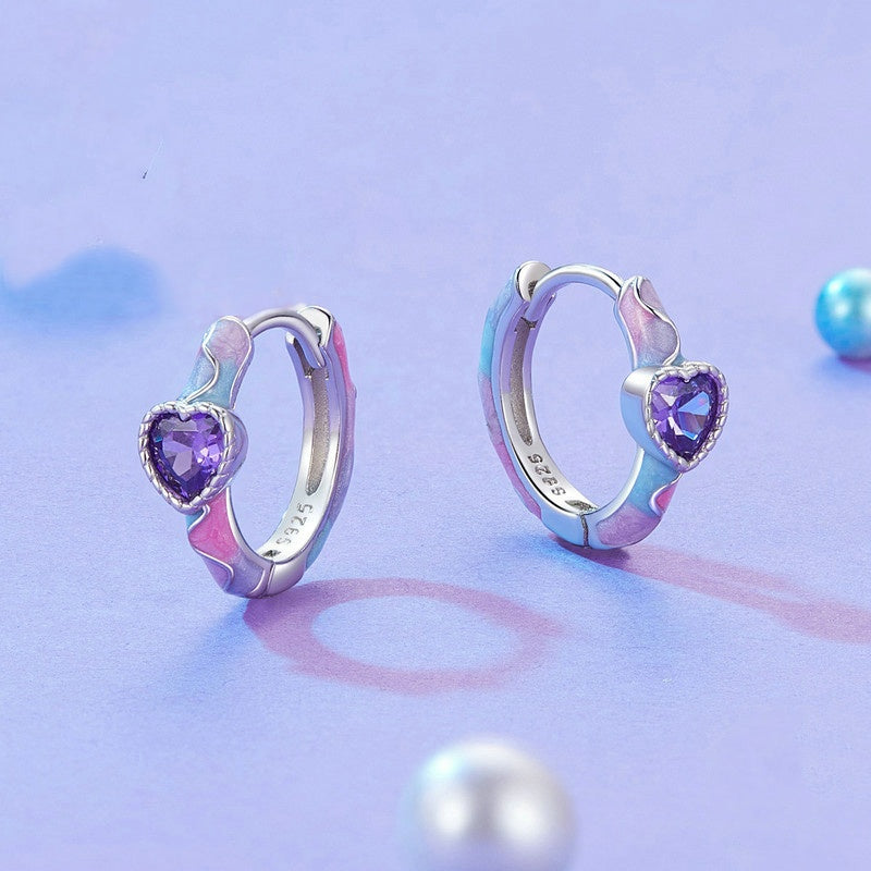 Jzora Elegant Galaxy Purple Heart Fantasy Sterling Silver Earrings