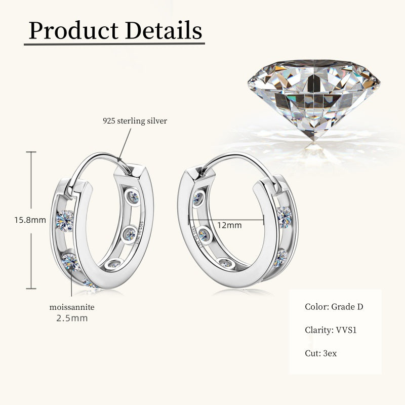 Jzora handmade 0.72ct round cut moissanite hoop sterling silver earrings