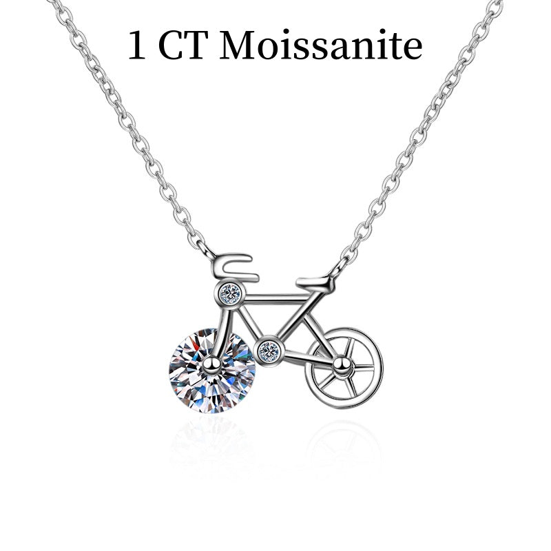 Jzora handmade 1ct round cut bicycle moissanite sterling silver necklace
