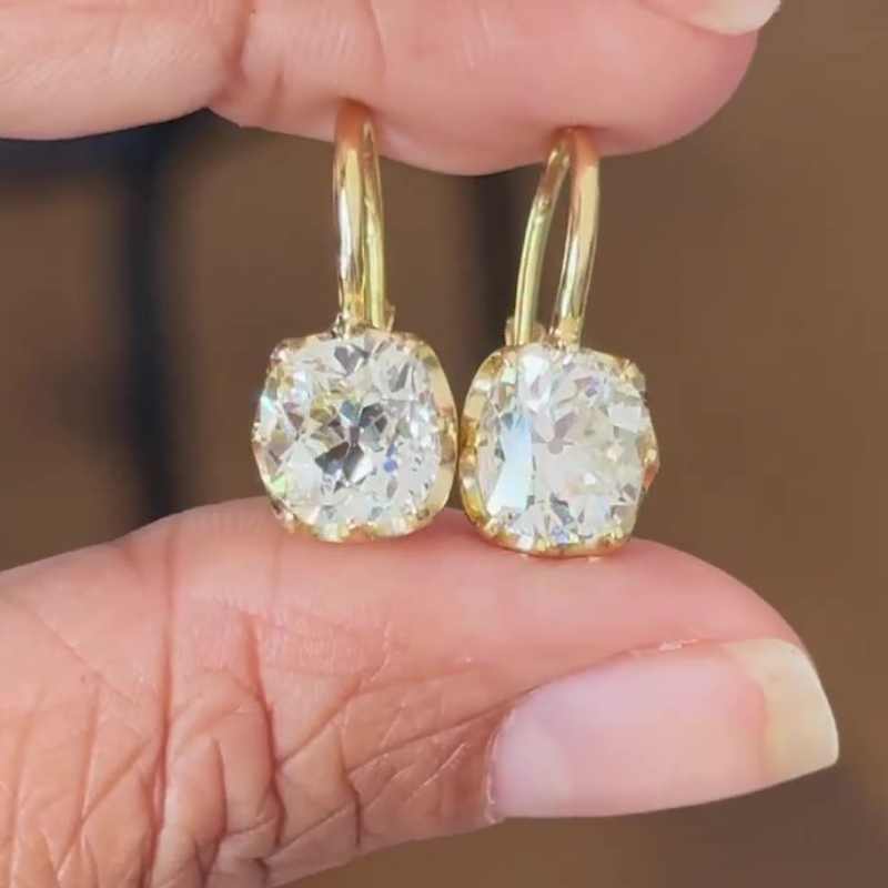 Jzora handmade 2 ct gold cushion cut diamond sterling silver stud earrings