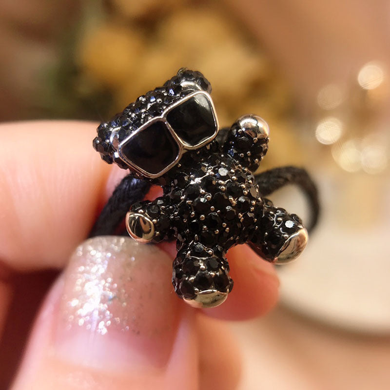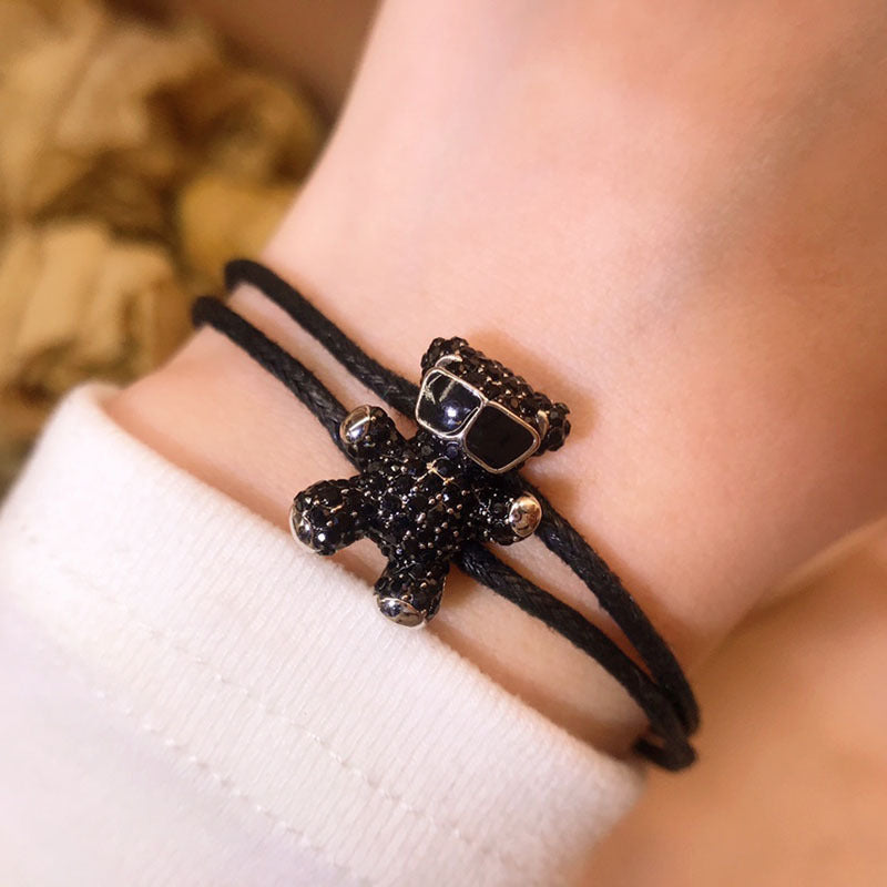 Jzora handmade black sparkle teddy bear tennis alloy bracelet
