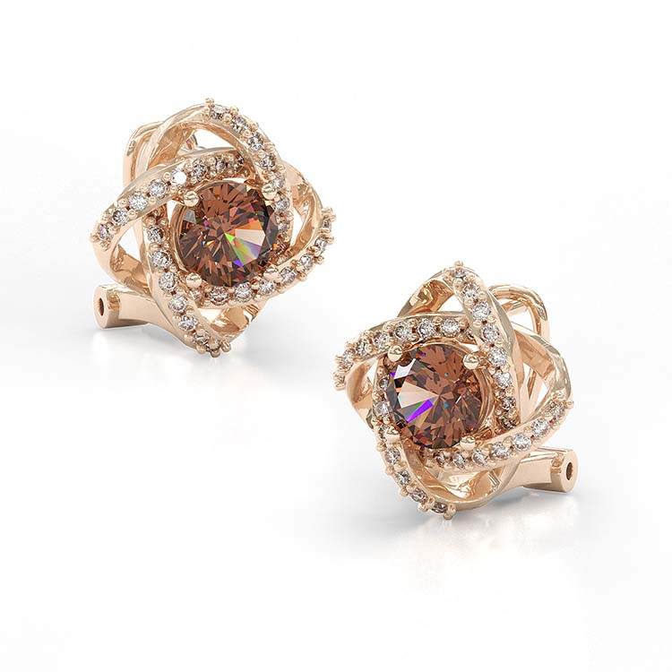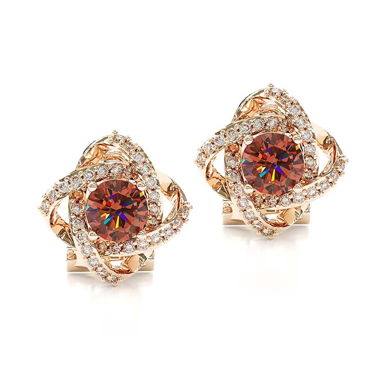 Jzora handmade gold four leaf clover classic halo round diamond sterling silver earrings