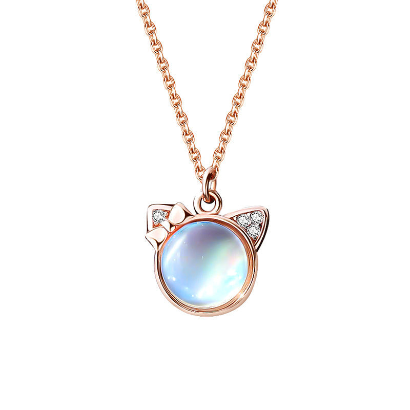 Jzora handmade lovely moonstone cat sterling silver necklace