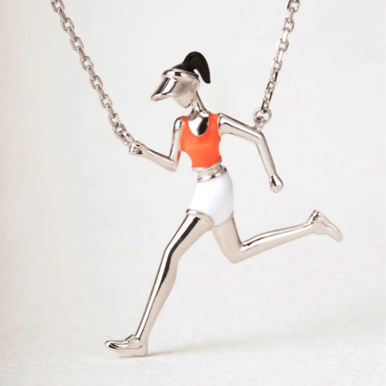This necklace is a minimalist figurine that presents a running pose and is full of motion. It can be used as a memento of completing a marathon, a souvenir to record one's achievement.