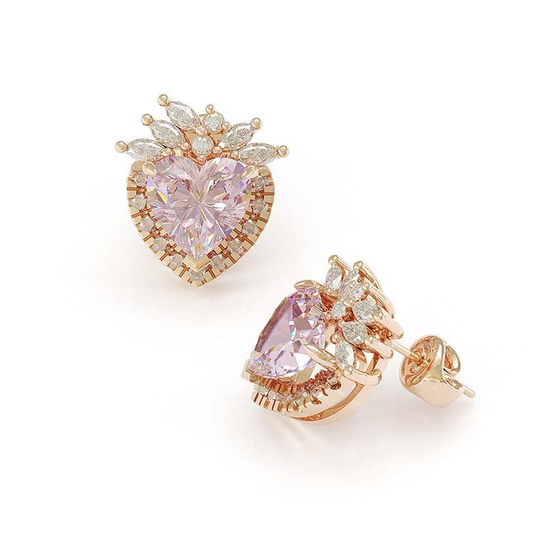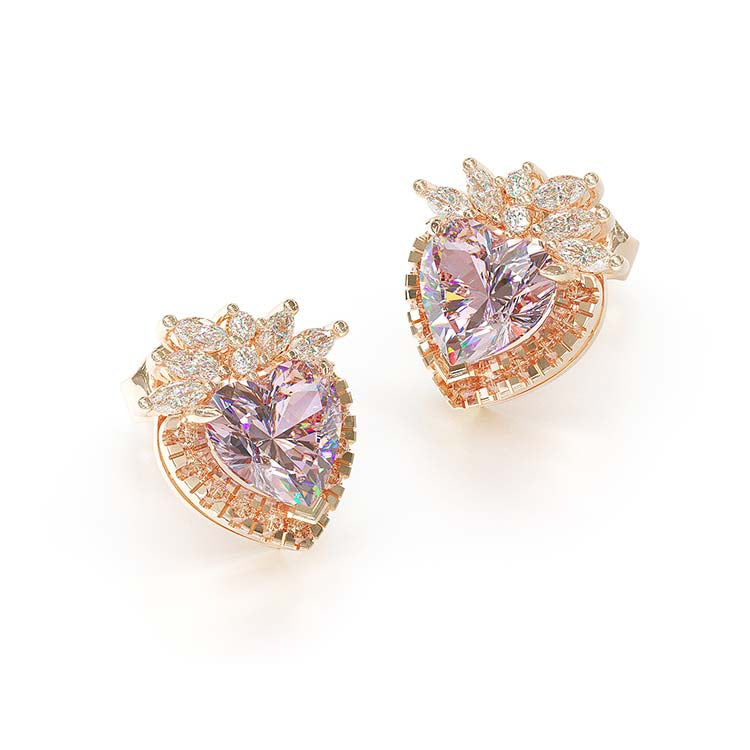 Jzora handmade pink 1ct heart cut classic sterling silver earrings