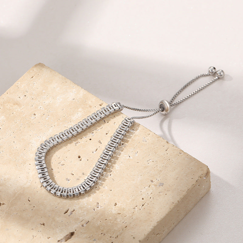 Jzora handmade simple tennis sterling silver adjustable bracelet