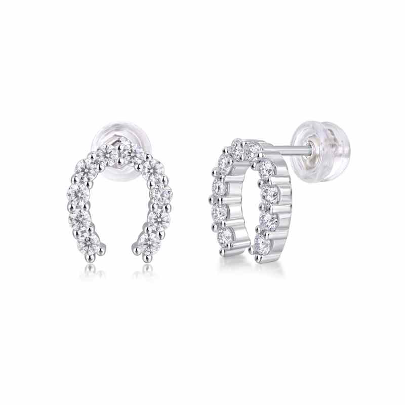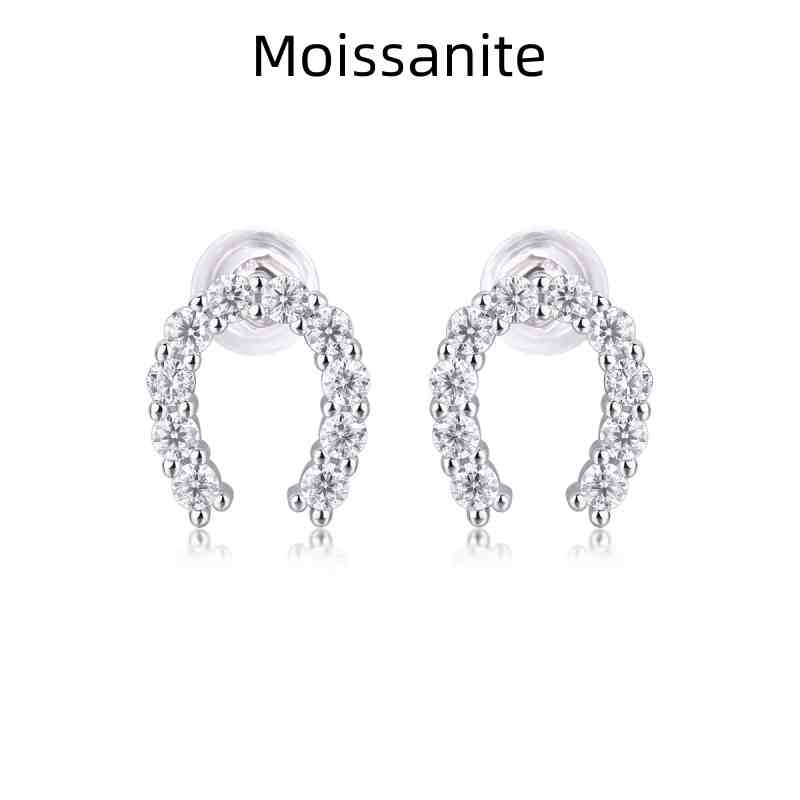 Jzora handmade U shape round vintage Moissanite sterling silver earrings