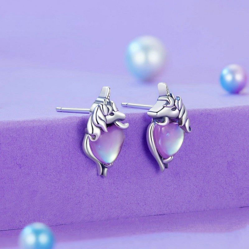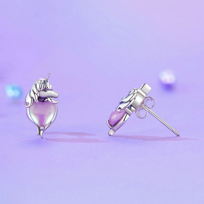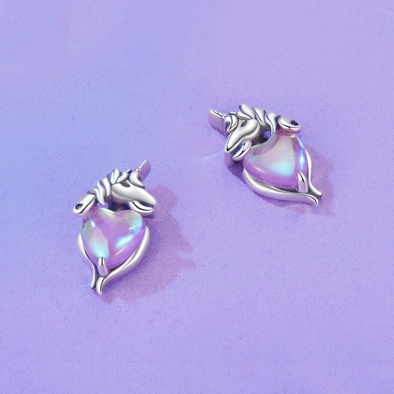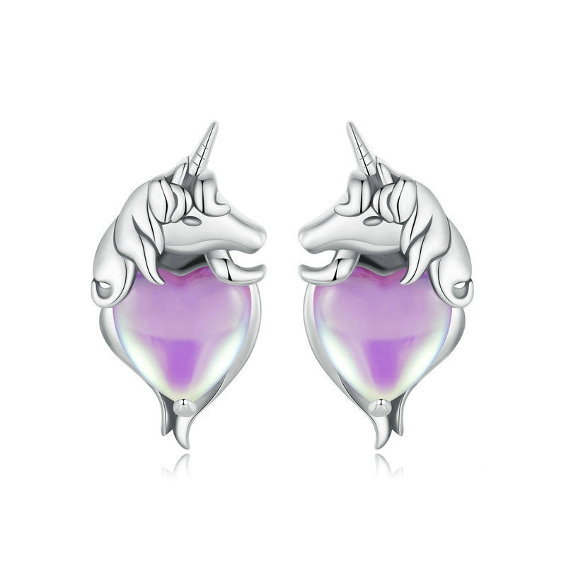 Jzora Purple Heart Unicorn Dreamy Sterling Silver Earrings