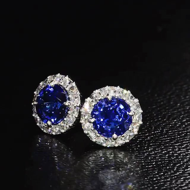 Jzora Vintage Sapphire Diamond Halo Sterling Silver Earrings